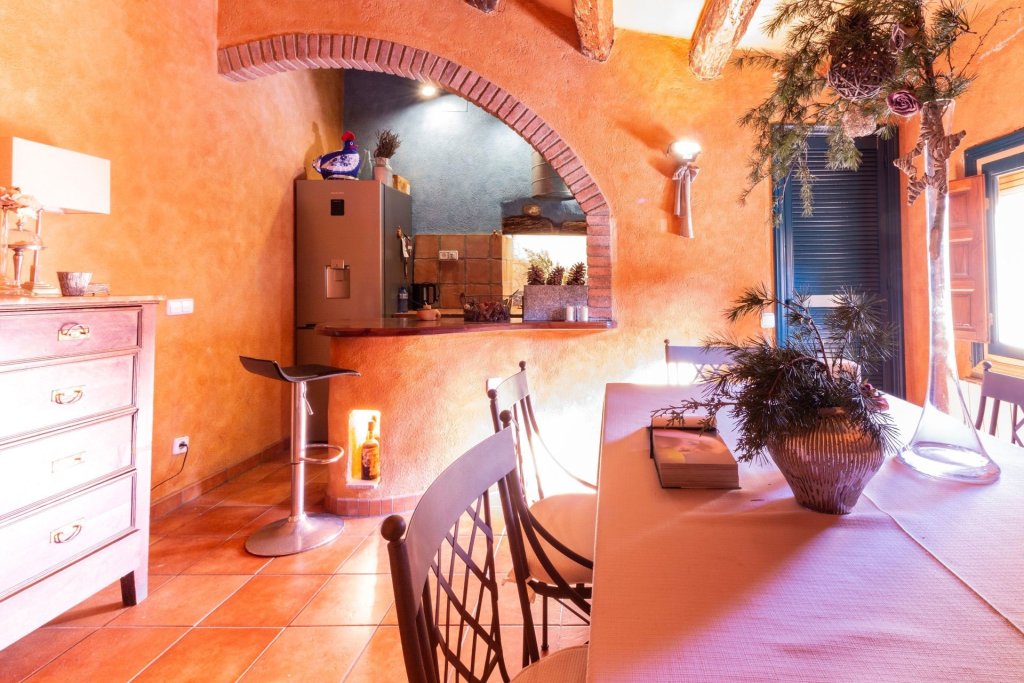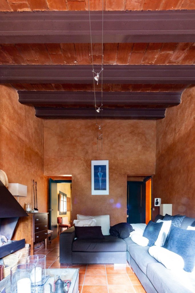 Cerramientos de madera, suelos de terracota, decoración con aire toscano y estilo rústico catalán