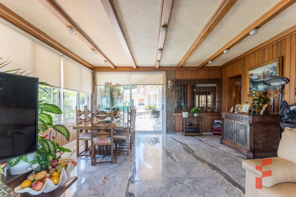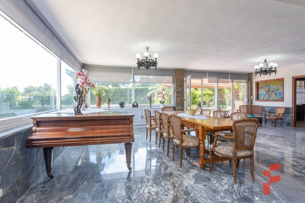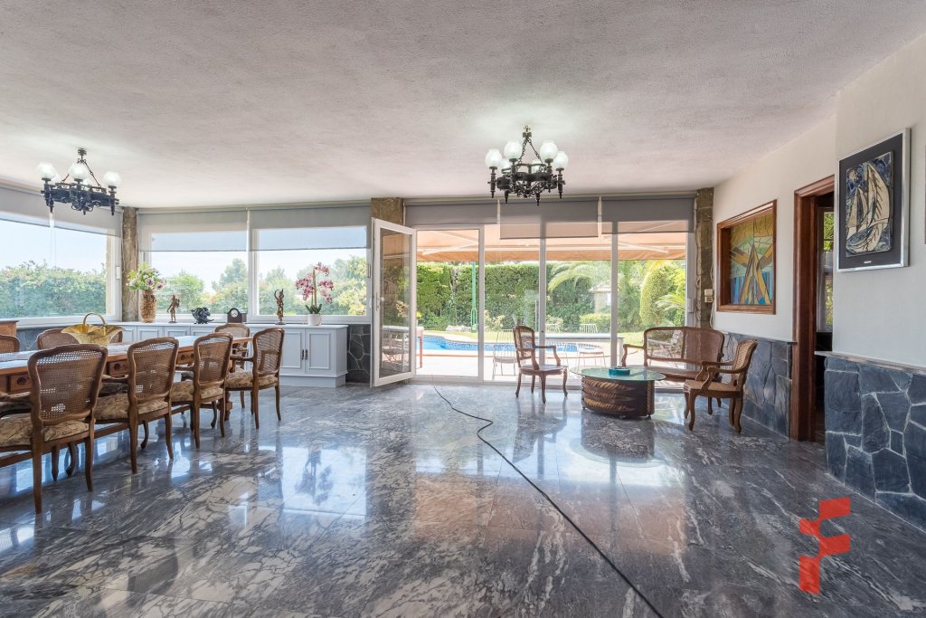 4 salones/comedores + salón de verano acristalado con vistas al jardín